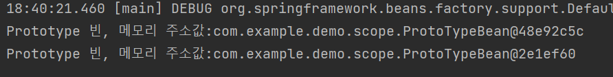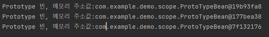 System.out.println("Prototype 빈, 메모리 주소값:" + this);
