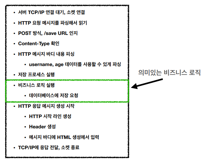멀티 쓰레드를 생성, 관리하는 부분은 was에서 처리해주기에 사용자는 복잡한 쓰레드 관련 코드를 신경쓰지 않아도 된다.
