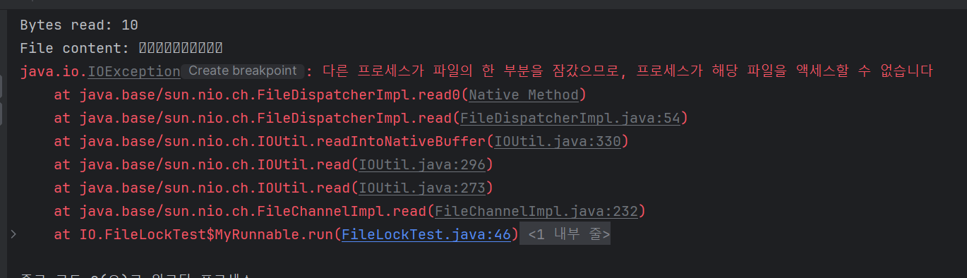 이 코드를 실행시키면 Gather-Scatter.txt 파일은 잠금에 걸려 다른 쓰레드에서 접근이 거부된다(lock 메서드에 false 대신 true 값을 주면 접근 가능해진다).