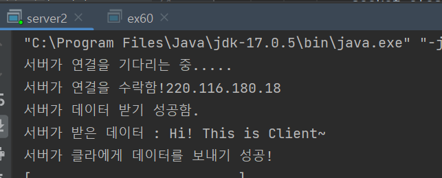 System.out.println("서버가 클라에게 데이터를 보내기 성공!");