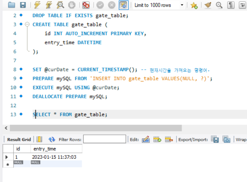 1. PREPARE 변수명 from 쿼리문; 형태로 사용하고자 하는 쿼리문을 변수 형태로 저장한다.