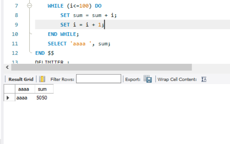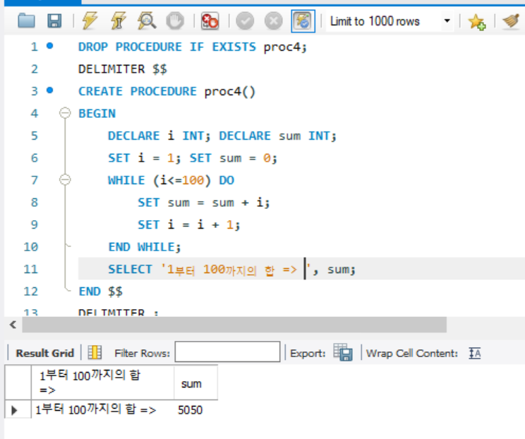 SELECT '1부터 100까지의 합 => ', sum;