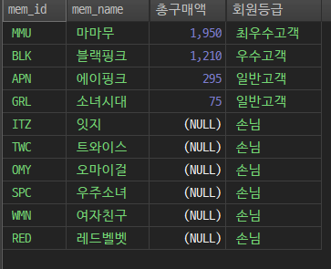 END "회원등급" -- 별칭달기