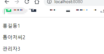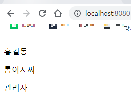 list라는 이름으로 받은 데이터는 List<Member>타입의 데이터로, 3개의 인덱스를 가지고 있으며 내부에 user_name값을 가지고 있다. 직접 코드를 쓰기에는 큰 의미도 없는 코드들이 너무 방대하게 늘어놓는 것 같아서 생략하겠다.