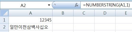 엑셀에서 숫자를 입력하면 그 숫자에 맞는 한글로 변환해주는 NUMBERSTRING 함수가 있다.